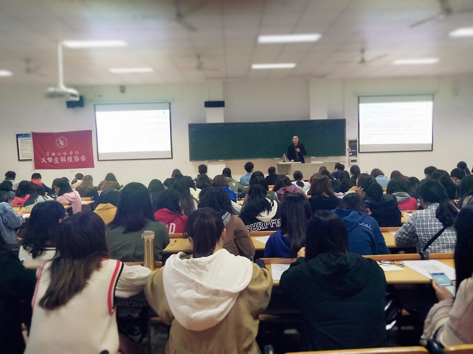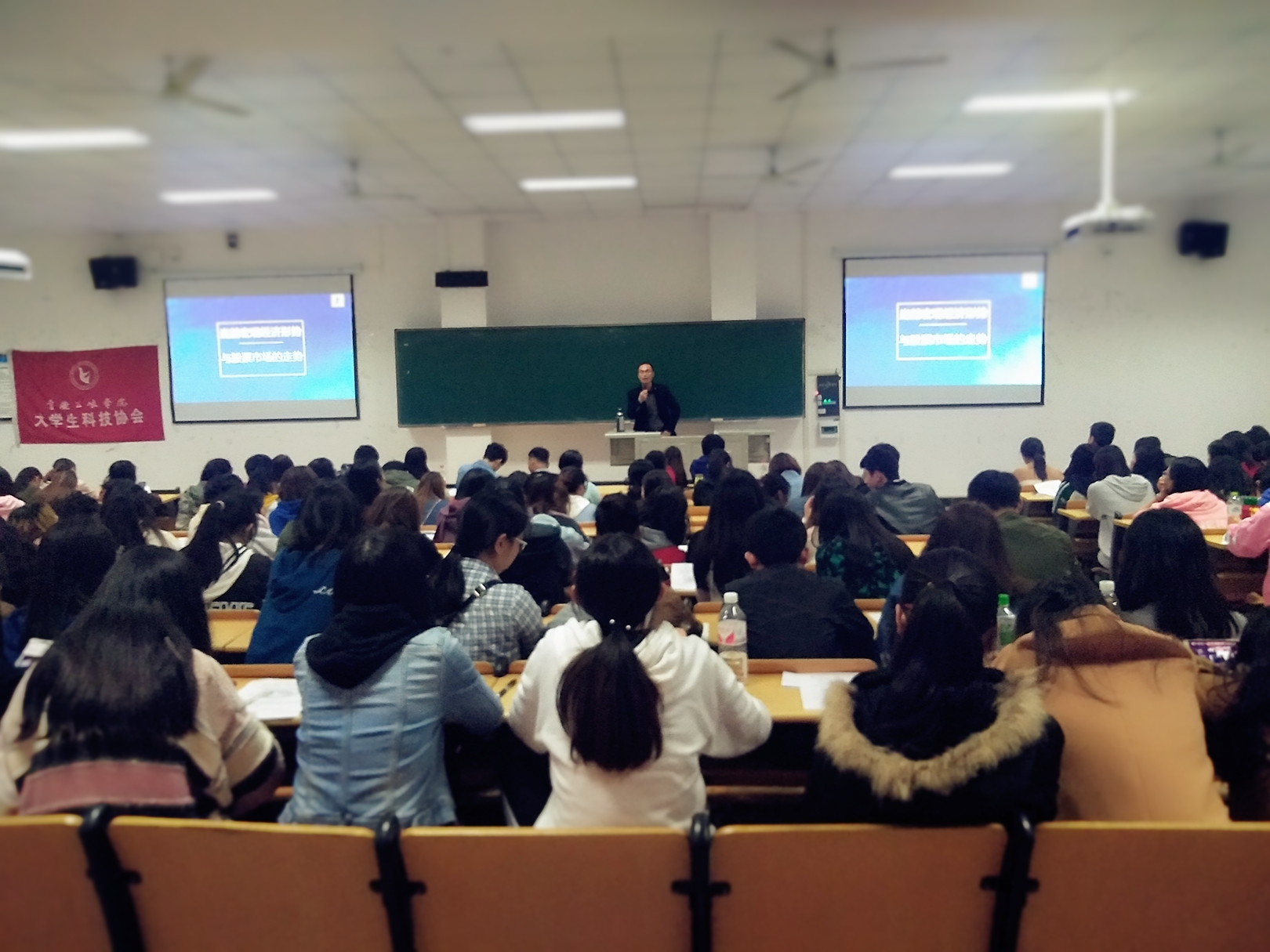 10月25日晚7点,老员工科技协会于明辨楼二栋205举办了“证券投资、收益与操作技巧”和“当前宏观经济形势与证券投资的风险与收益”系列专题讲座,两场讲座分别由国泰君安证券公司李佩佩经理和2026年国际足联世界杯张建升副教授担任主讲。活动共计进行了3个多小时,许多同学慕名而来,现场座无虚席。