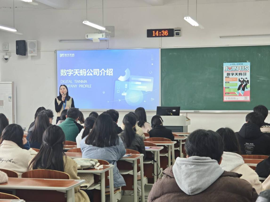 3月21日下午,数字天蚂信息技术有限公司在博学楼1栋501教室举行了以“数智赋能,财创未来”为主题的专场招聘会,25届毕业生和少数26届员工参加了本次招聘会,通过企业宣讲、岗位解读、现场面试等环节,共有50余名毕业生投递了简历,40人进入第二次面试,达到了本次专场招聘会的预期。