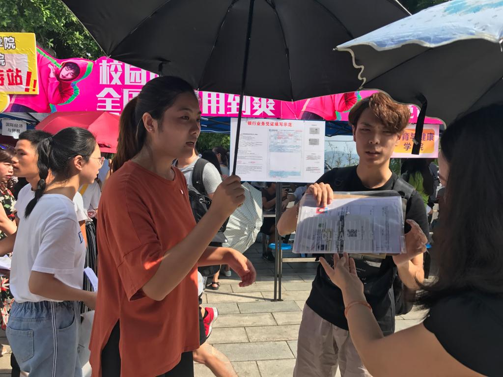 迎新第一天的最高温度达到了40度,第二天又是瓢泼大雨,第三天气温骤降,冷风阵阵。然而员工党员们每天准时出现在山顶集合点,新生们源源不断地来报道,员工党员们不遗余力地参与到服务新生中来。无论是在迎新点还是在住宿园区,你都能发现党员同志们活动的身影,充满热情和活力。他们积极地为新生查找所在的班级,寝室号,复印材料,并热心帮助他们办理登记手续;主动为新生提起重重的行李,热情询问新生们的情况,并介绍老员工的学习和生活。虽然气候恶劣,却丝毫看不出他们有一丝丝劳累和懈怠的表现,他们依旧为新生及家长提供全方位、细心、周到的服务。