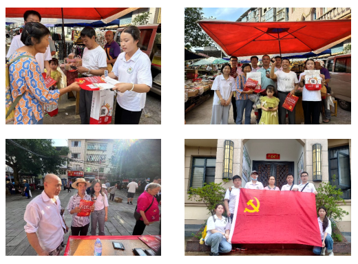 在甘宁镇天宫社区,实践队成员利用“赶场”的时间,以发放党史宣传手册、为村民播放党史宣传片等多种形式向当地村民们介绍党的发展历程以及伟大领袖的先进事迹,让他们深刻领会党的光辉历史,感受共产党人的初心和使命。
