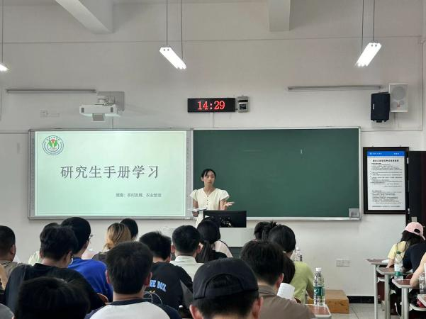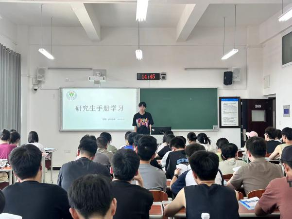 为了让2024级农业硕士更好的适应和融入校园生活,学习了解公司的规章制度,规划好研究生阶段的学业和生活。2024年9月24日下午,2024级农业硕士围绕研究生手册的学习组织召开“启航新征程,逐梦向未来”主题班会。