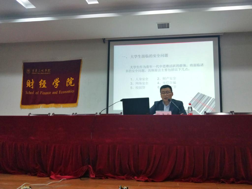 为提高18级新生安全意识、使新生们深感安全教育的重要性。2018年9月25日晚,公司党总支副书记骆孟鑫于明辨楼2栋104举办了安全教育讲座。