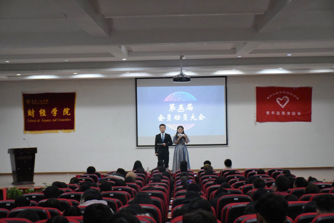 动员大会上,青协会长张佳晶学姐向同学们介绍了协会的成员以及协会的活动。接着由优秀志愿者杨欢学姐、青协干事代表马国庆发言。中途穿插着青协干事们准备的精彩节目。紧接着青协新一届的全体干事宣誓并且由闫兴运老师授牌,最后,戚特老师对此次大会做出总结。