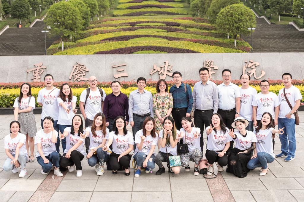 活动中,员工们重返沙龙校区,重温了当年的宿舍和教室,参观了百安校区的建设情况,并在校大门合影留念。