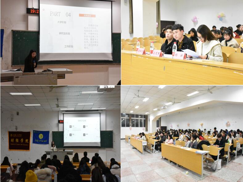 伴随着动感的音乐,在老员工街舞团富有激情的舞蹈中大赛渐渐拉开帷幕。首先,参赛的14位选手依次上台进行了PPT的详细讲解。他们围绕着职业规划的自我认知、外部环境分析、SWOT分析、职业目标与具体分析等方面来介绍自己的职业规划。虽然每位参赛选手的职业规划方向有所不同,有结合自己未来想从事的岗位作规划的,有考研升学规划的,也有创业规划的,但他们都有一个相似之处,那就是他们都能清晰地进行自我定位,明白自己未来想走怎样的路。同时,在本次大赛中,14位参赛选手从容清楚地表达自己的职业规划理想,这让观众也从中受益匪浅。