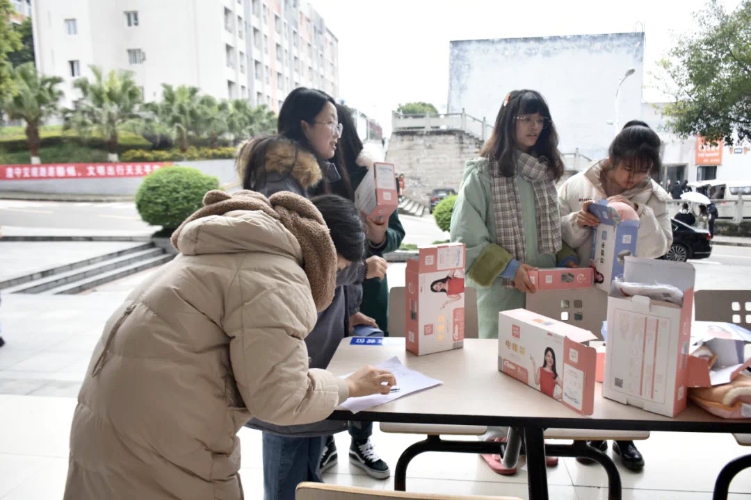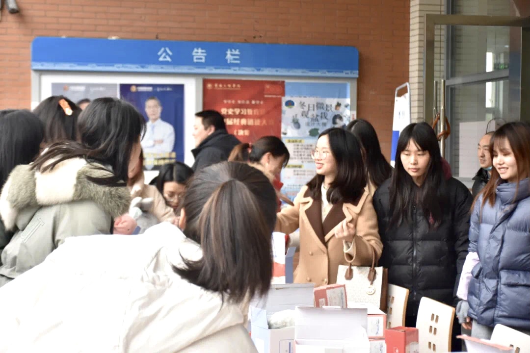 同学们排队领取热水袋和保温杯等小礼品,虽然只是小小的热水袋,但却温暖了考研学子们的心。在此次活动期间,老师在一旁细心询问同学们的备考情况并且对他们即将面临的考验加以鼓励和期许。