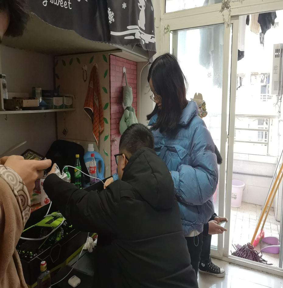 排查重点围绕寝室天然气管道,电气设备使用情况,是否私拉乱接电线,违规使用大功率电器等,嘱咐员工用气用电安全,严格遵守寝室管理规定,共同维护和谐稳定校园。同时强调注意个人疫情防控和期末诚信考试,非必要不离万不离渝,寒假期间及时报送健康、行动轨迹情况,杜绝前往中高风险地区;诚信应考,沉着应考,以满意的成绩回馈父母和老师,共享新春喜悦!