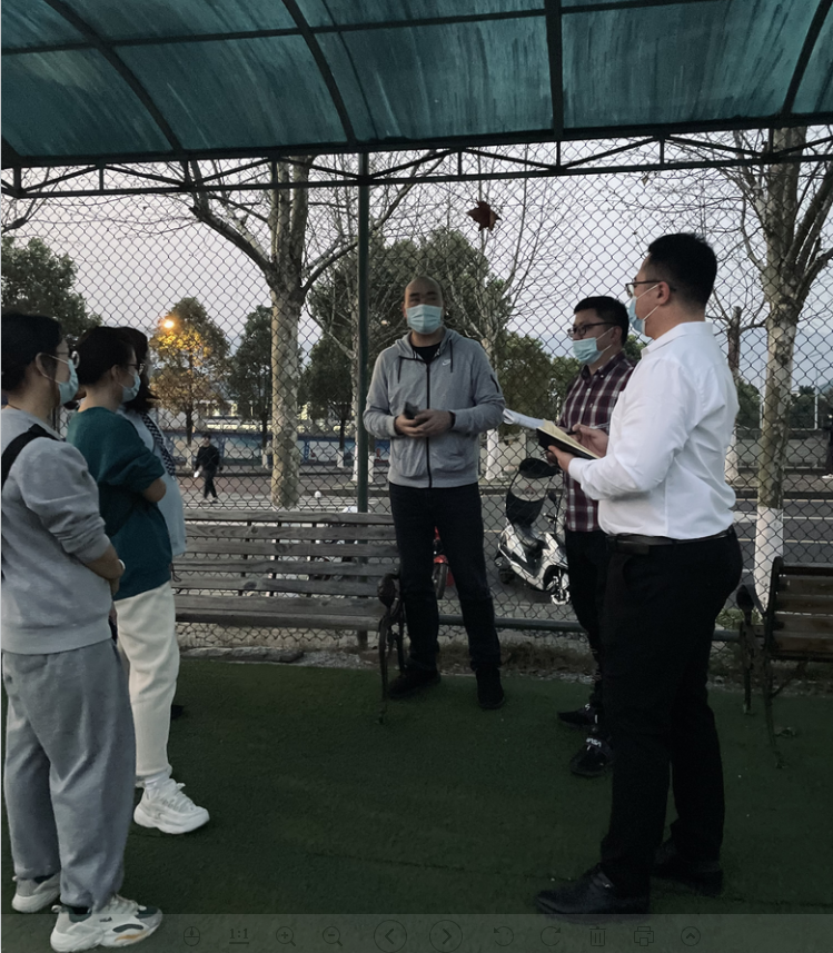 首先,全体学工人员提前到核酸检测地点,组织员工有序进场进行核检测,在参检之前,院学工办专门开了员工干部专题工作会,对员工参加核酸检测做了具体的安排。在员工参加核算检测期间,副书记何兴权组织全体学工人员在篮球场开工作短会,要求各年级组织好本次及15日的核算检测,做到100%检测;在疫情防控工作中要教育和引导员工,严格遵守公司的各项制度和要求,服从管理;为了便于管理,统一了近期员工请假离校的条件和要求。随后全体老师集中讨论了公司第三周的员工教育管理工作,进一步明确了工作重点。