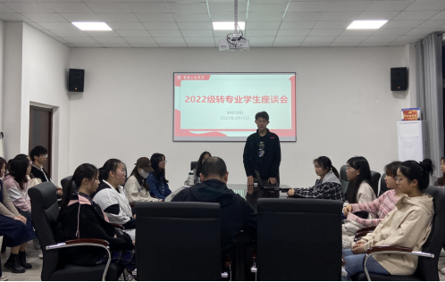 为深入了解转专业员工学习生活状况,帮助其尽快适应新环境、融入新班级,财经公司于3月15日晚7:00在博学楼3栋112会议室组织召开了2022级转专业员工座谈会。党总支副书记何兴权、学工办副主任王蓉琳、2022级辅导员和三十位转专业员工参加了座谈会。