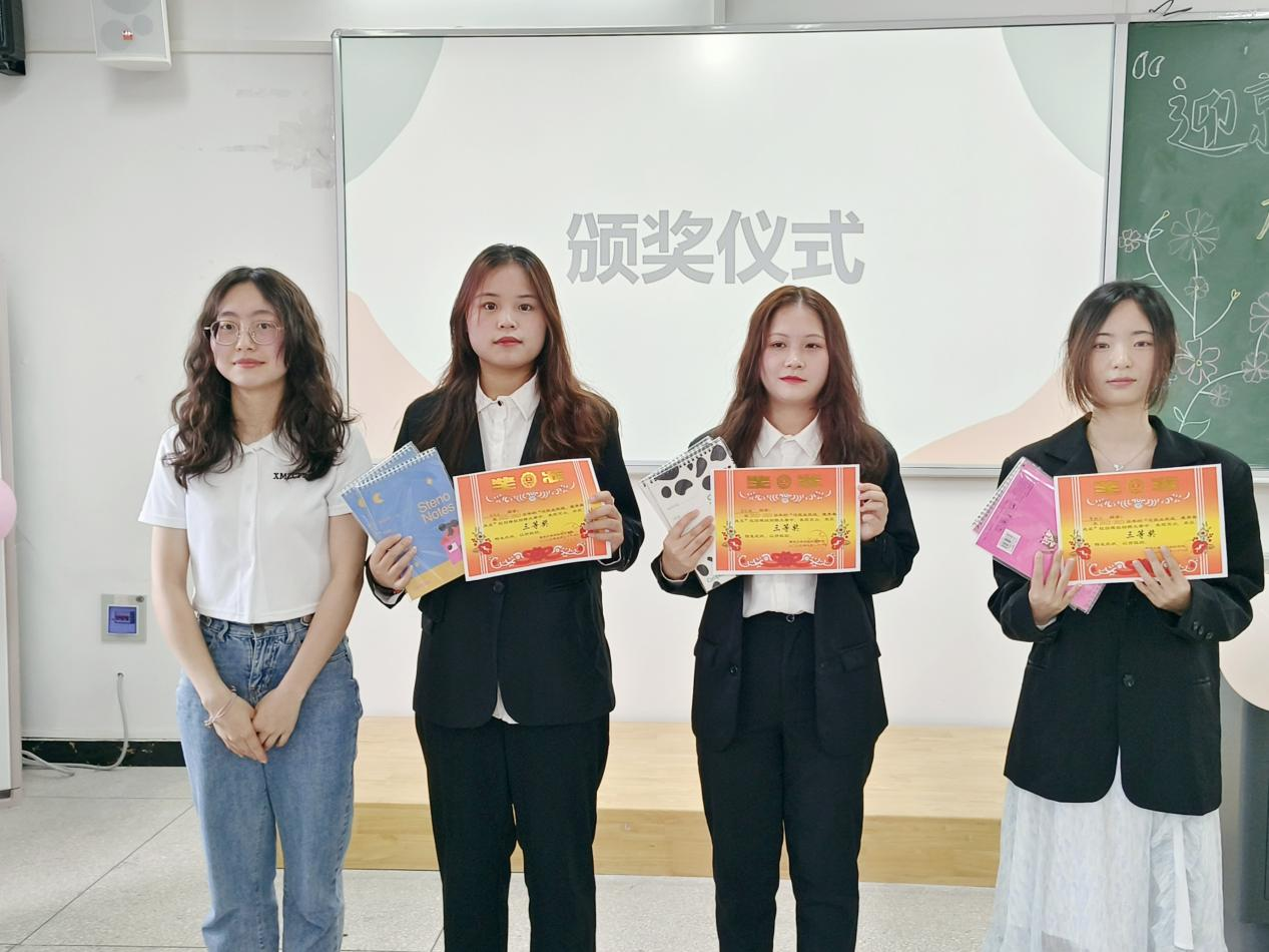 比赛开始,8位参赛选手依次上台进行自我介绍,展示个人风采。随后,评委们根据选手面试的岗位性质和特点,围绕选手的个人优势和未来规划进行提问。面对评委们具有针对性的提问,选手们也能从容应答。接着,由袁梦宇对本次活动进行点评,建议大家多学习了解相关知识,更好的面对就业等问题。点评结束,由工作人员对所有参赛选手成绩进行统分,在此期间,大家观看了一个关于简历美颜美化的小视频。最后,由主持人宣布获奖选手,袁梦宇和张蒲为他们进行颁奖,并合影留念。
