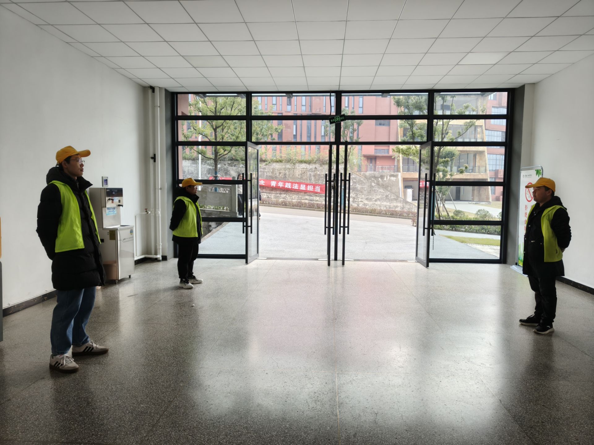 执勤期间,志愿者们不畏严寒,严守时间节点,准时到岗就位,在维护教学秩序、引导师生通行、解答场地咨询、检查简餐进教室等方面一丝不苟,高质量完成了本次助管执勤。同学们挺拔坚毅的身影,成为公司最亮丽的风景线。